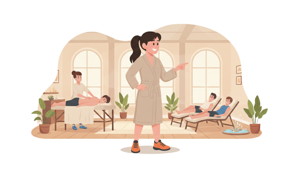 Masáže, sauna, fyzioterapia, regenerácia. Rezervačný systém pre služby, personál aj miestnosti s presným časovým plánovaním.