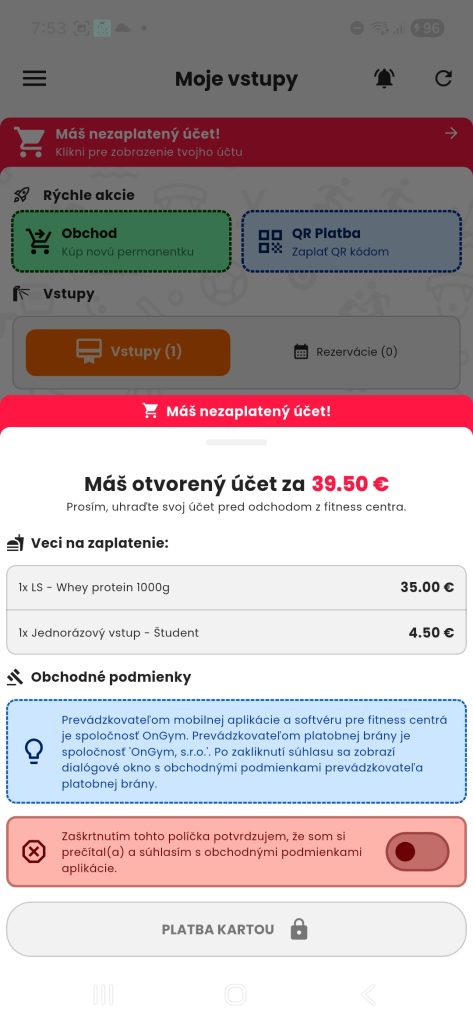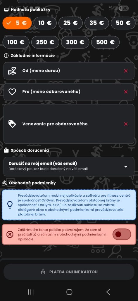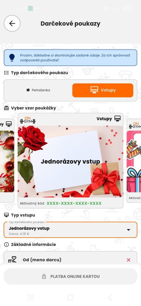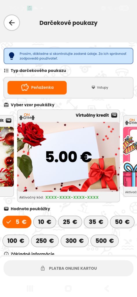 Nové funkcie v aplikácii: Predaj darčekových poukážok (kredit/vstupy) a možnosť online úhrady podlžností (napr. doplatky za prekročenie času) priamo v appke.
