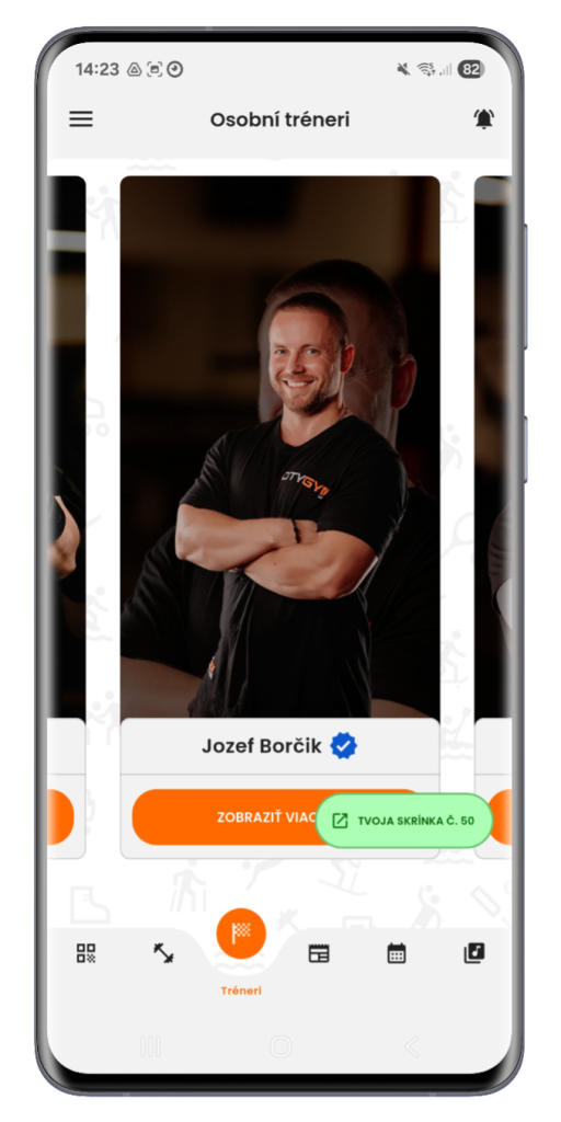Vaši klienti sa do fitness centra dostanú priamo cez mobilnú aplikáciu pomocou dynamického QR kódu, ktorý sa automaticky obnovuje každých 5 sekúnd. To zaručuje maximálnu bezpečnosť a eliminuje zneužitie.