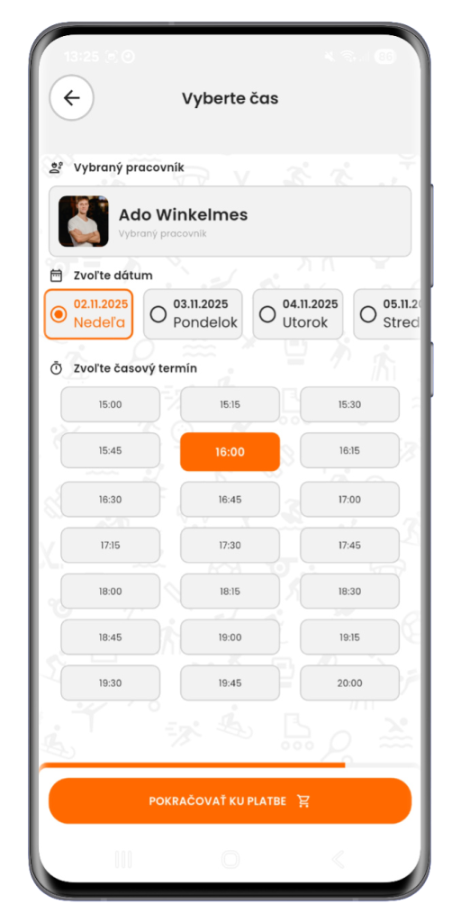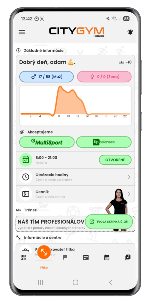 Moderná a prehľadná appka, ktorá vašim klientom umožní pohodlne si rezervovať služby, termíny, zakúpenie permanentky, informácie o fitness centru a mnoho iného. Funguje automaticky, nonstop 24 hodín denne.